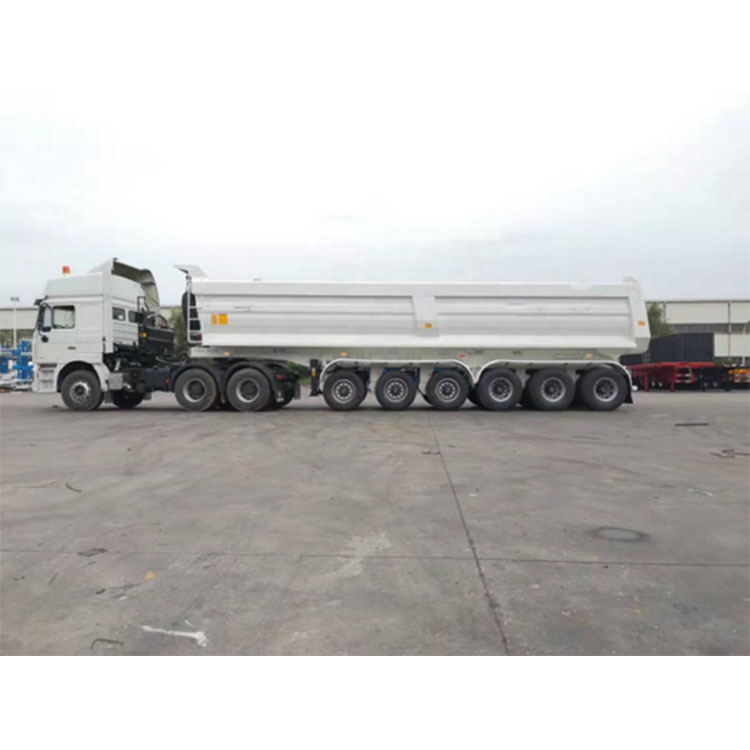 Zes as dump semi -trailer is een veelgebruikte transportmachines. INLEIDING: De structuur van de motor, het chassis en de cabine is dezelfde als die van algemene zware voertuigen. De rijtuig kan achteruit of lateraal kantelen en de zuigerstangbeweging wordt bestuurd door het besturingssysteem. Achterwaarts kantelen komt vaker voor en het duwen van de zuigerstaaf zorgt ervoor dat de koets kantelt. Een paar bidirectionele vernietigt.